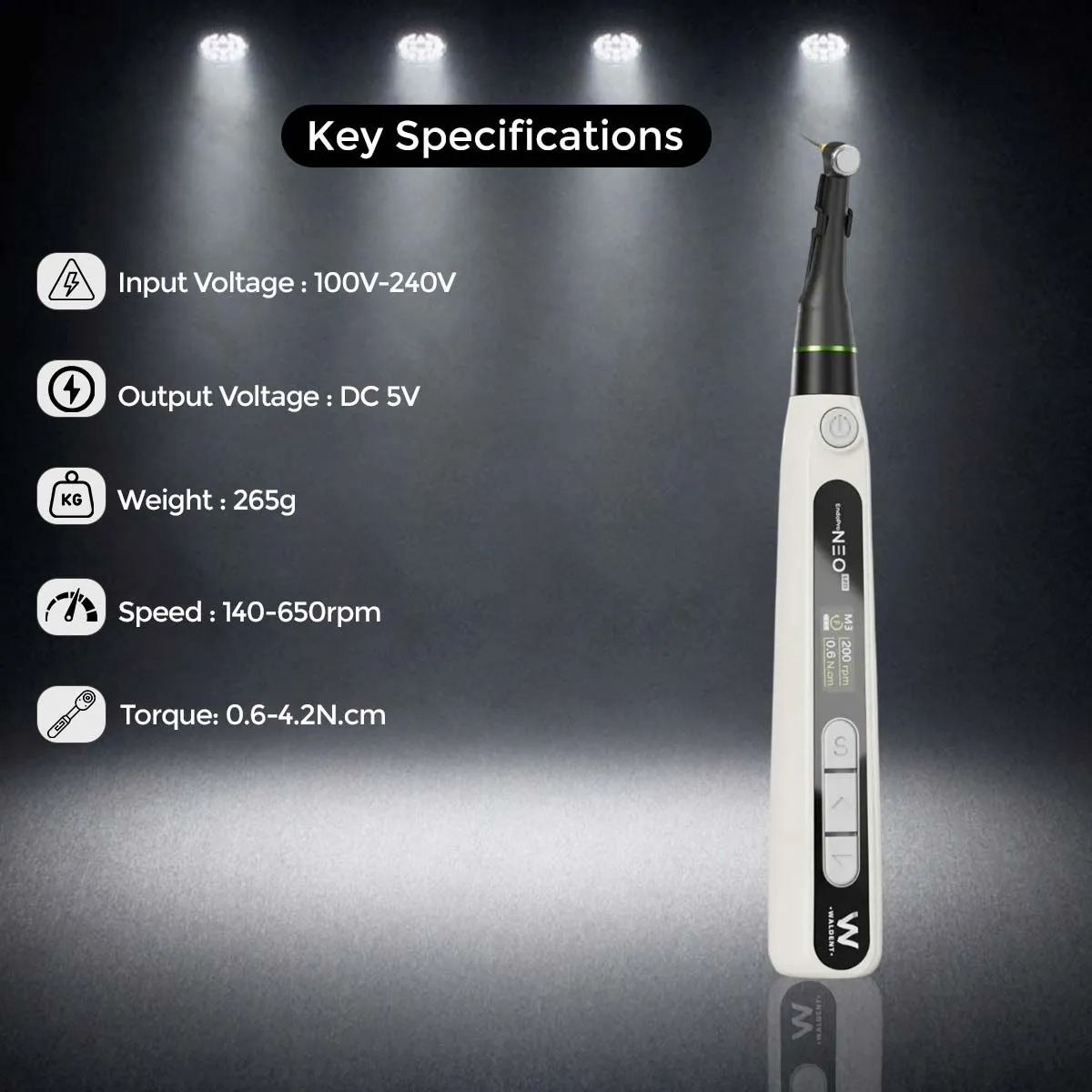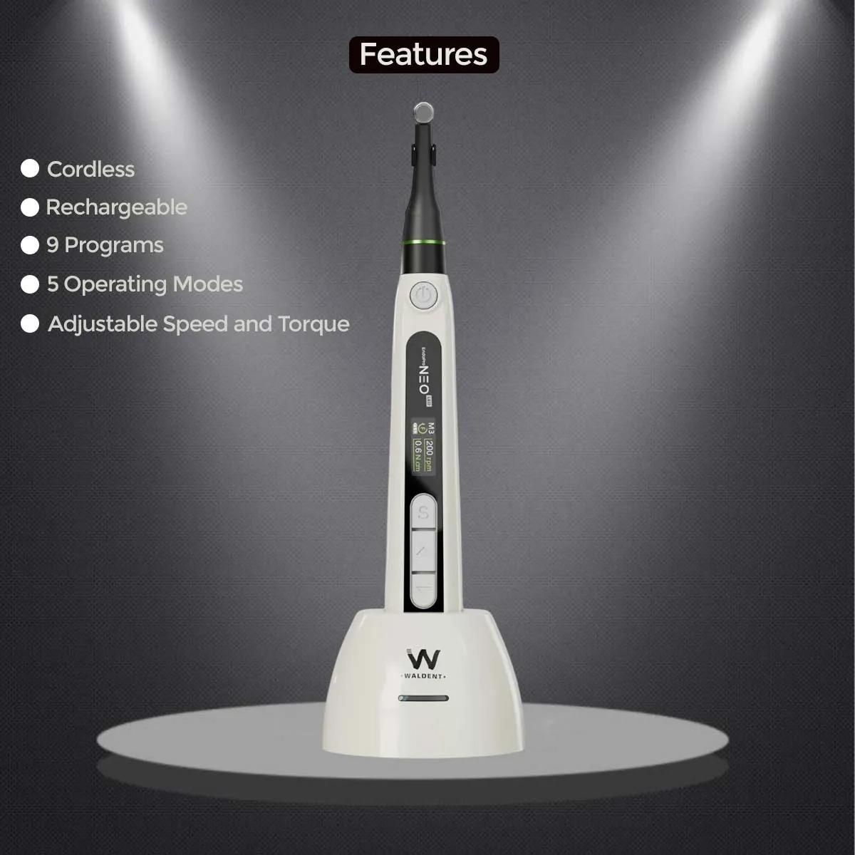 Waldent EndoPro LED Cordless Endomotor is designed for optimum freedom making conventional endodontics better & efficient. EndoPro amazes as a cordless endomotor with brilliant & smart optimization for Advanced Endodontics.Optimum head size enables better view for the endodontists thus, enhancing their efficiency.