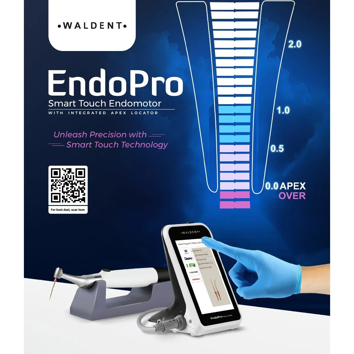 - 2-year warranty is applicable for this product “Waldent EndoPro Smart Touch With Integrated Apex Locator”.